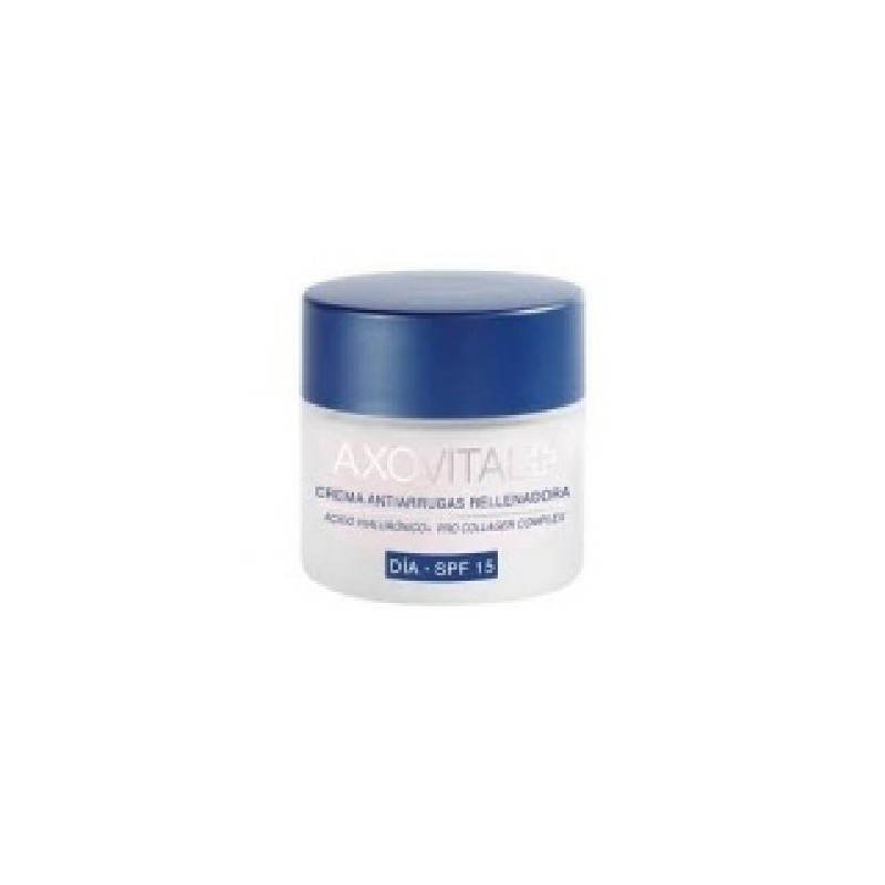 CUMLAUDE AXOVITAL CREMA ANTIARRUGAS ES UNA CREMA DE DÍA QUE CONSIGUE RELLENAR Y REPARAR ARRUGAS DESDE EL INTERIOR Y REAFIRMANDO INTENSAMENTE LA PIEL. EL ÁCIDO HIALURÓNICO QUE CONTIENE SU FÓRMULA, DE ALTO PODER HIDRATANTE Y RELLENADOR, RESTAURA EL VOLUMEN DE LA PIEL QUE PROPORCIONA UN RELLENO INMEDIATO DE LAS ARRUGAS Y LAS LÍNEAS DE EXPRESIÓN. COMBINADO CON UN POTENTE ESTIMULADOR DE COLÁGENO CONSIGUE REESTRUCTURAR Y REAFIRMAR LOS TEJIDOS, LOGRANDO ASÍ RELLENAR INCLUSO LAS ARRUGAS MÁS PROFUNDAS DESDE EL INTERIOR. EL RESULTADO ES UNA PIEL VISIBLEMENTE MÁS FIRME REJUVENECIDA. CON FILTROS SPF 15.