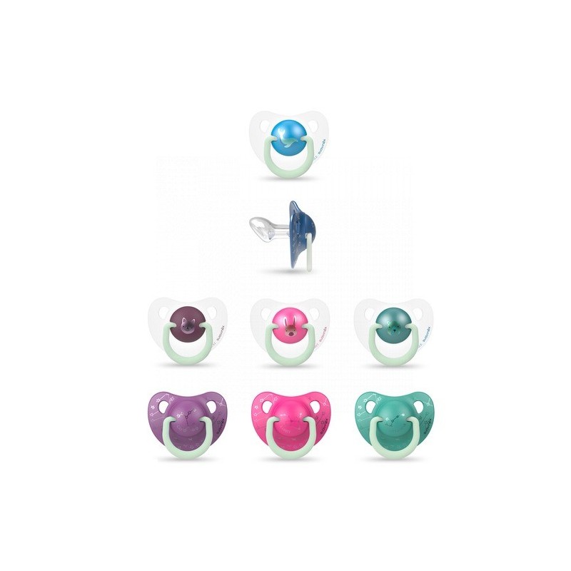 CHUPETES NIGHT & DAY PARA BEBÉS DE 6 A 18 MESES CON TETINA ANATÓMICA DE SILICONA Y ANILLAS LUMINISCENTES QUE BRILLAN EN LA OSCURIDAD.TETINA ANATÓMICA DE SILICONA.DE 6 A 18 MESES.SE PRESENTAN EN UN PACK DE DOS UNIDADES, UN CHUPETE ESPECIAL PARA EL DÍA Y OTRO CHUPETE PARA LA NOCHE. AMBOS CHUPETES DISPONEN DE LA ANILLA LUMINISCENTE QUE BRILLA EN LA OSCURIDAD PARA ENCONTRAR EL CHUPETE FÁCILMENTE EN LA CUNA DEL BEBÉ SI SE LE CAE.LA TETINA ANATÓMICA IMITA LA FORMA DEL PEZÓN MATERNO DURANTE LA SUCCIÓN Y SE ADAPTA PERFECTAMENTE AL PALADAR DEL BEBÉ.LA SILICONA ES UN MATERIAL ALTAMENTE RESISTENTE E INDEFORMABLE QUE NO ALTERA SU COLOR NI OLOR.TETINAS APROBADAS POR LA SOCIEDAD ESPAÑOLA DE ODONTOPEDIATRÍA.
